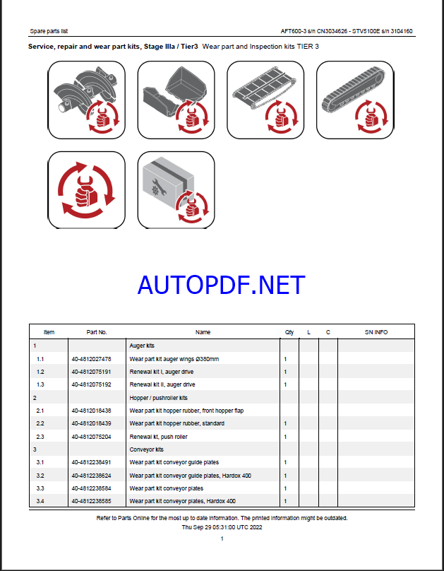 Type of Documents: Parts Catalog