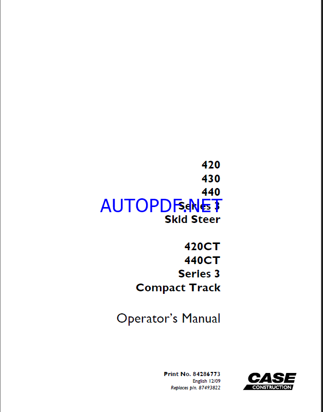 Case 420, 430, 440 Series 3 Skid Steer and 420CT, 440CT Series 3