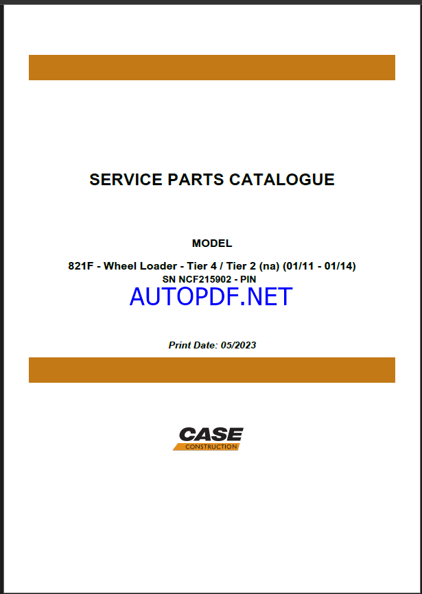 Case 821F Tier 4 and Tier 2 NA Wheel Loader Service Parts Catalogue (530634821) (May 2023)