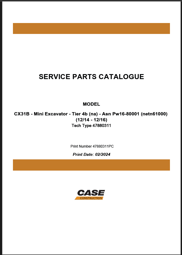 Case CX31B Tier 4B NA Mini Excavator Service Parts Catalogue (47880311PC) (February 2024)