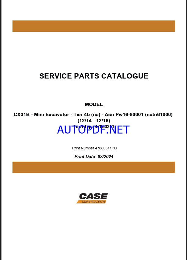 Case CX31B Tier 4B NA Mini Excavator Service Parts Catalogue (47880311PC) (February 2024)