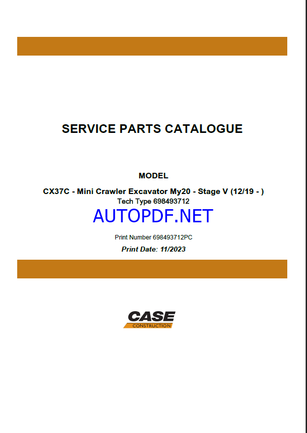 Case CX37C Stage 5 Mini Crawler Excavator Service Parts Catalogue (698493712PC) (November 2023)