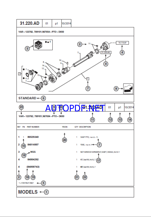 Type of Documents: Service Parts Manual