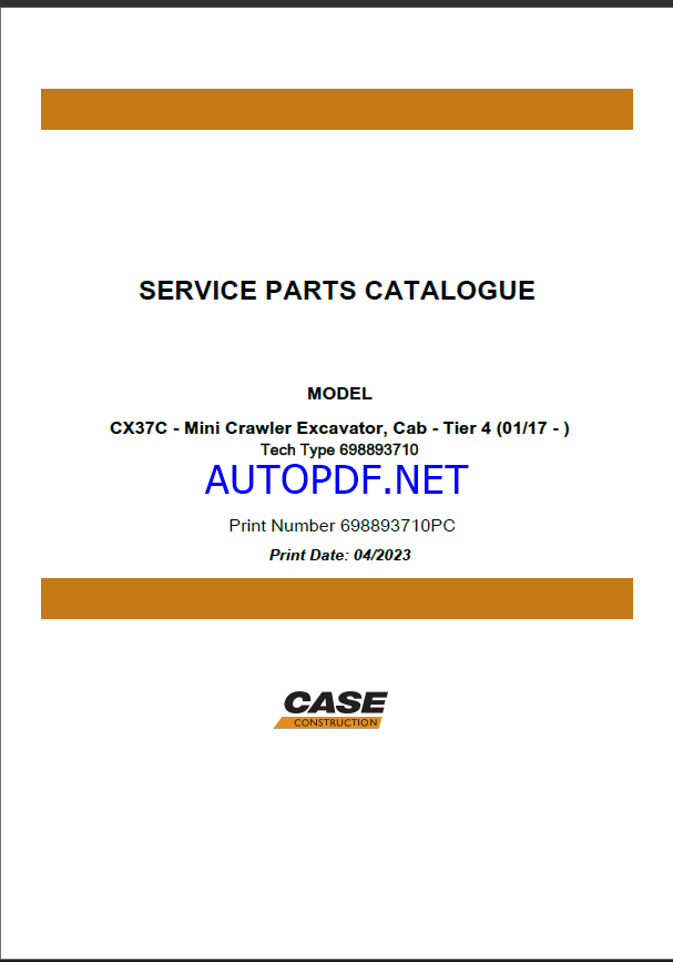 Case CX37C Tier 4 Mini Excavator Service Parts Catalogue (698893710PC) (April 2023)