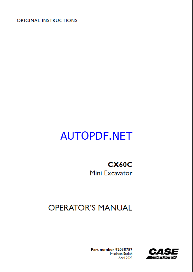 Case CX60C Mini Excavator Operators Manual (92038757) (April 2023)