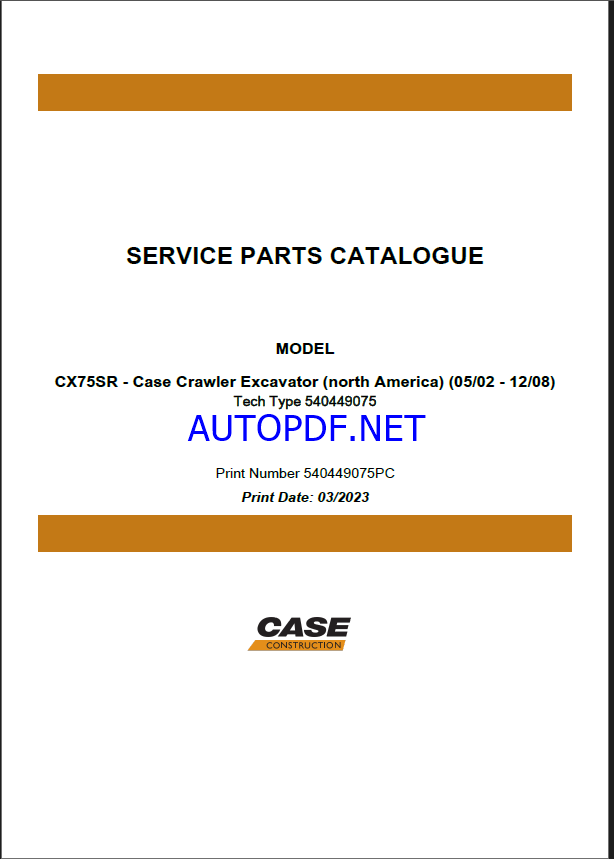 Case CX75SR NA Crawler Excavator Service Parts Catalogue (540449075PC) (March 2023)