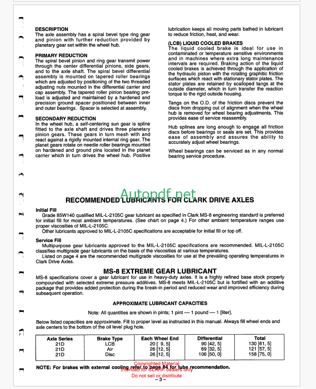 Clark 21D Series Planetary Drive Axle Maintenance and Service Manual (SM21D)