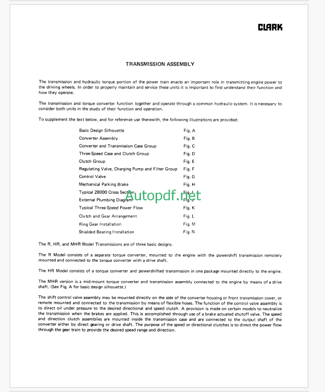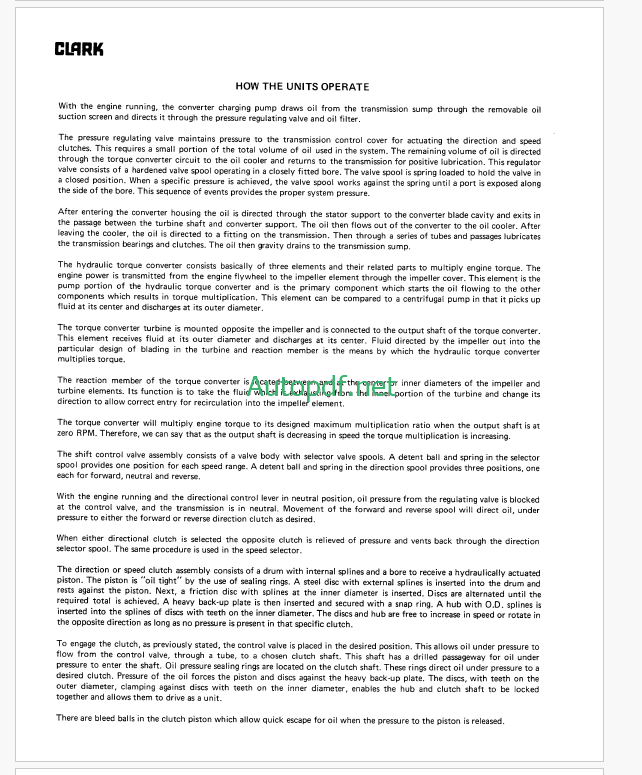 Clark 28000 Powershift Transmission HR Model 3 Speed Short Drop Maintenance and Service Manual