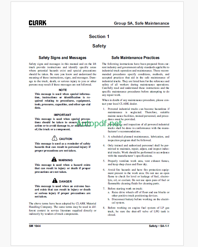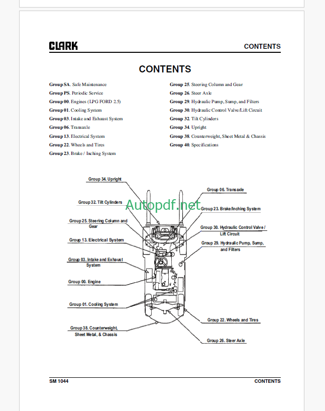 Clark C20, 25, 30, 35 L,G and C32cL Ford Engine Truck Forklift Service Manual (SM1044)