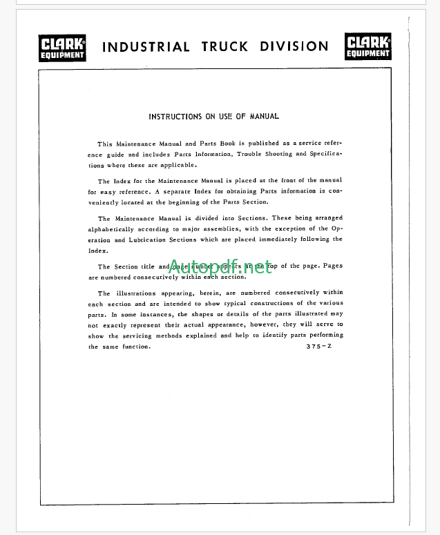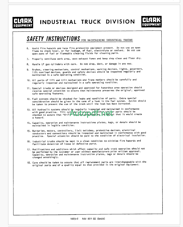 Clark C20B-1-296, C20P-1-366, C25B-1-296 thru Lot 617 Maintenance Manual (B79)
