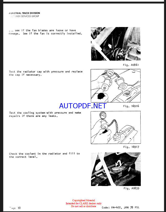 Clark C500, Y1015 Gas Forklift Planned Maintenance and Adjustment Procedures