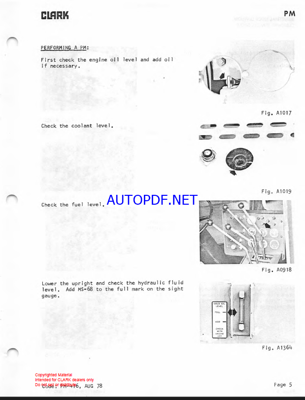 Clark C500 Y800 Forklift Planned Maintenance and Adjustment Procedures