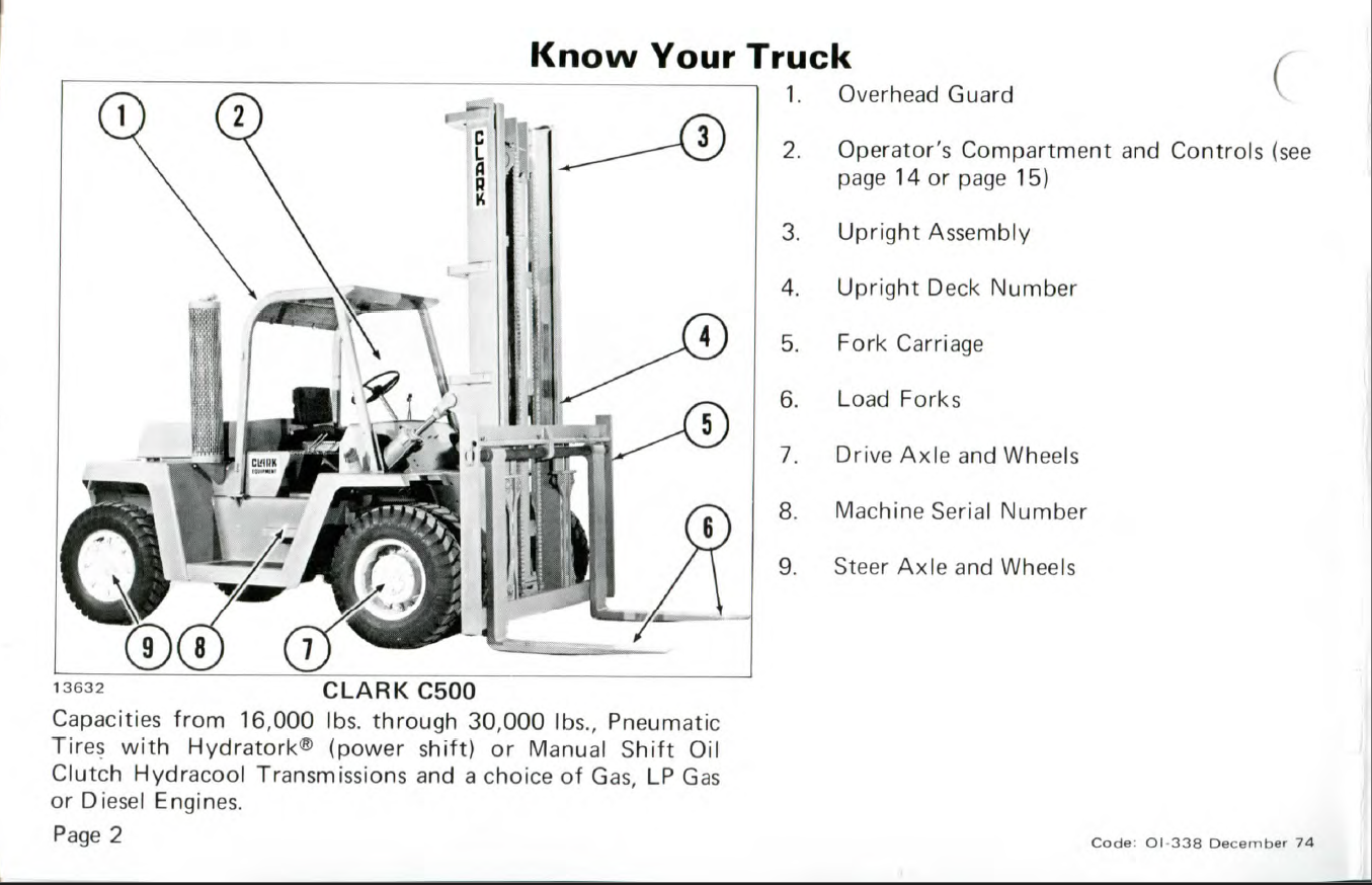 Clark C500(Y) 160 thru 300 Forklift Operators Manual (OI-338)
