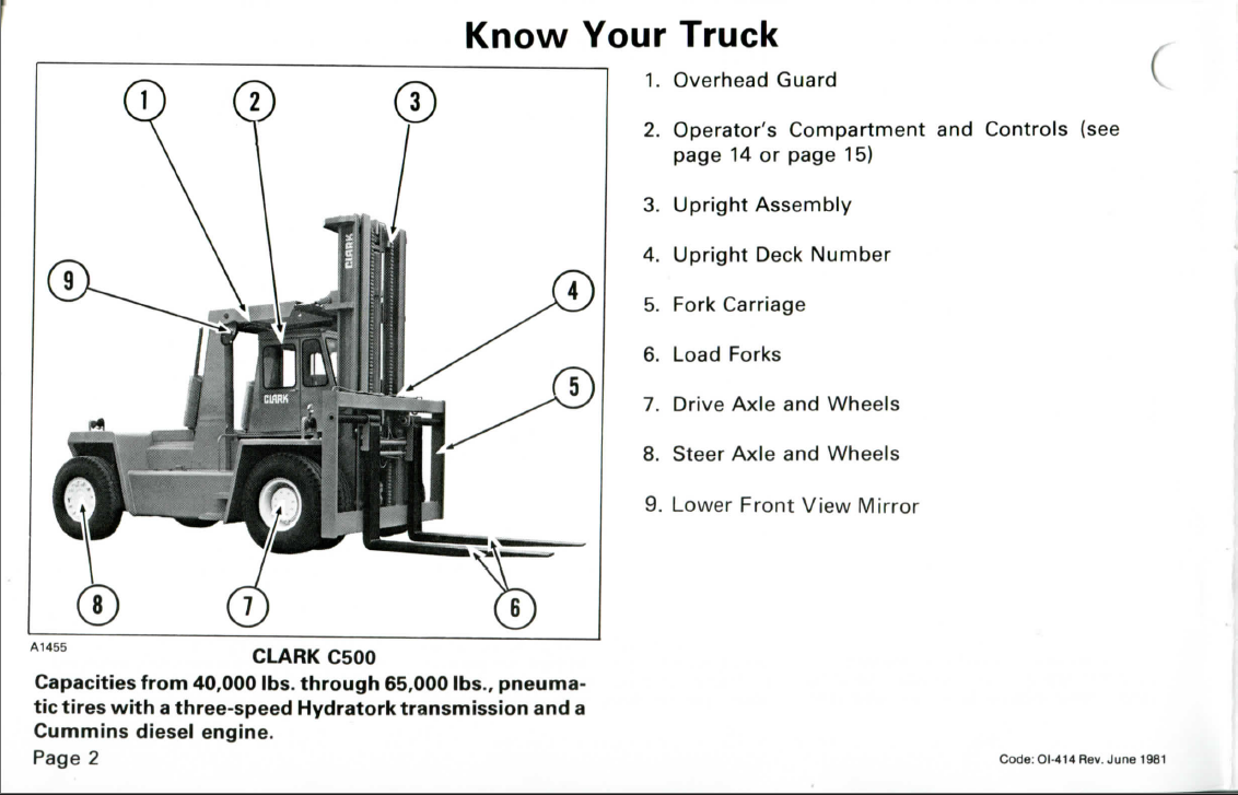 Clark C500Y-400 thru 600 Forklift Operators Manual (OI-414)