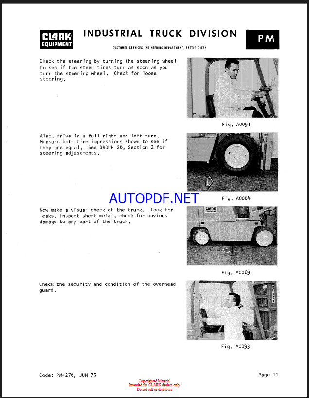 Clark C500Y 60-100 Forklift Planned Maintenance and Adjustment Procedures