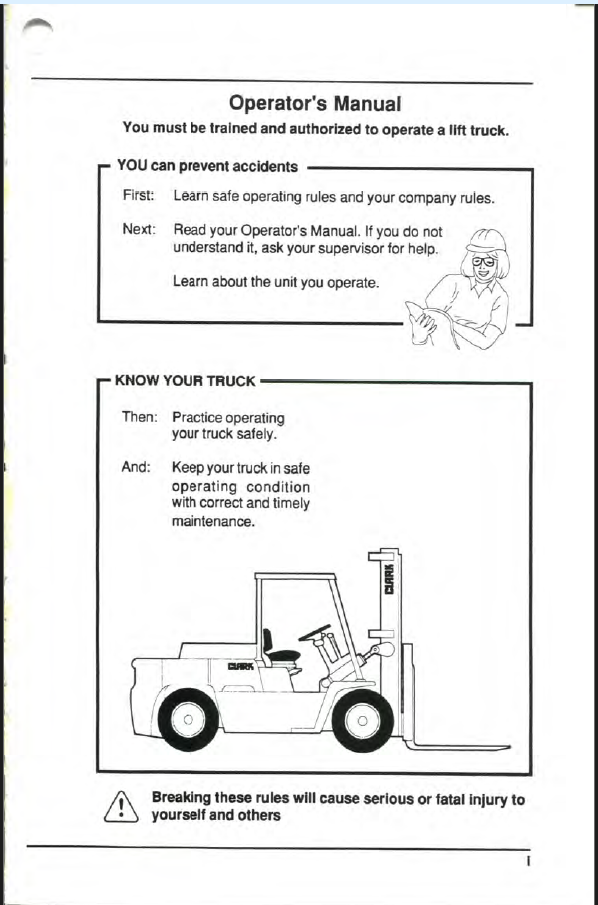 Clark C500Y110, C500Y135, C500Y155, C500Y165 D Forklift Operators Manual (OM-591)