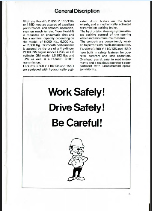Clark C500Y110, C500Y135, C500Y155 D Gas and LPG Forklift Operators Manual (OI-534)