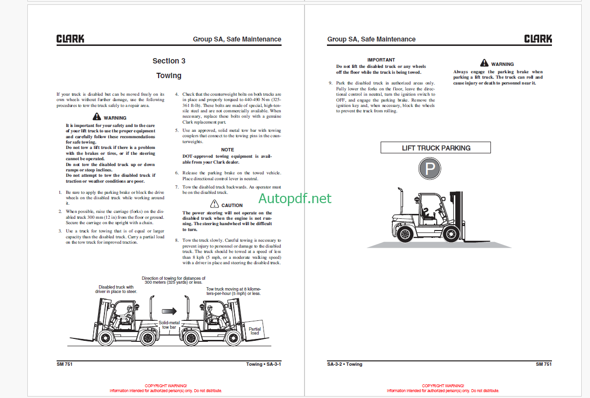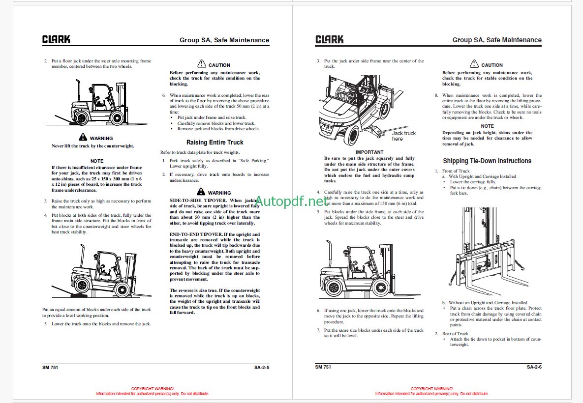 Model: Clark C60, C70, C75, C80 D and C60, C70, C75 L Forklift