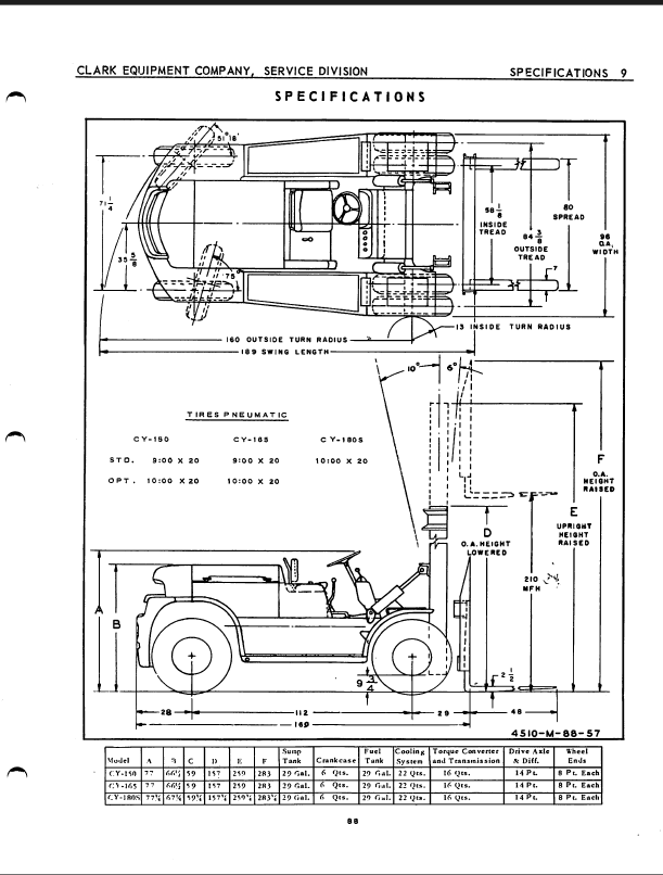 Clark Clarklift 150-200 CY150, CY165, CY180s,-1-EQ-208 thru 25-542 and CY200-1-QA-254 thru 14-454