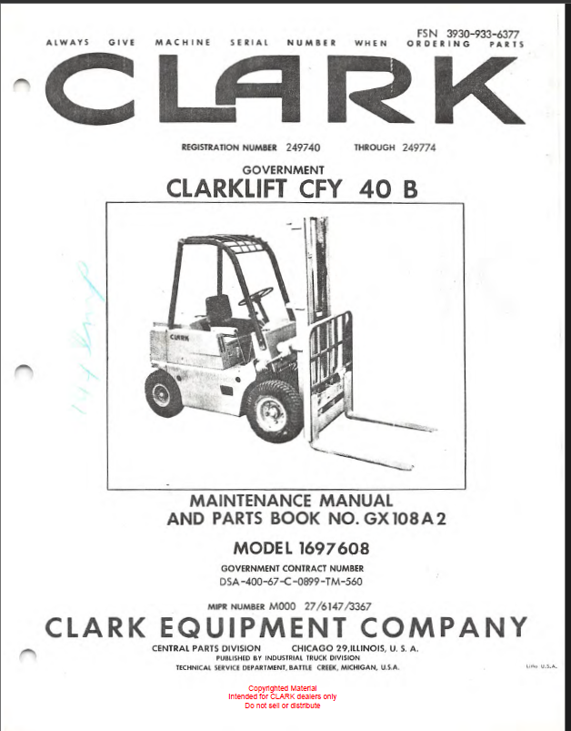Clark Clarklift CFY40B Forklift Parts Manual (GX108A2)