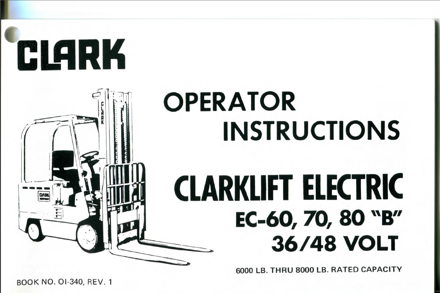 Clark Clarklift EC60, EC70, EC80 B 36-48 Volt Forklift Operators Manual (OI-340)