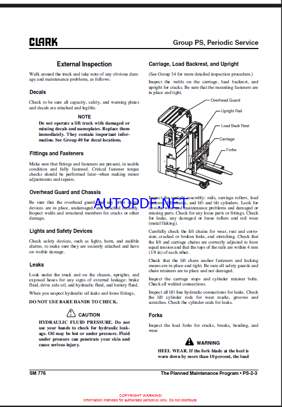 Clark CRX10, CRX13, CRX14, CRX15, CRX18, CRX20, CRX25 Reach Truck Forklift