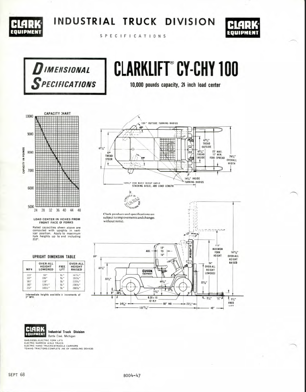 Clark CY100, CY120, CY140, CHY100, CHY120, CHY140 Forklift Operators Manual (O-153)