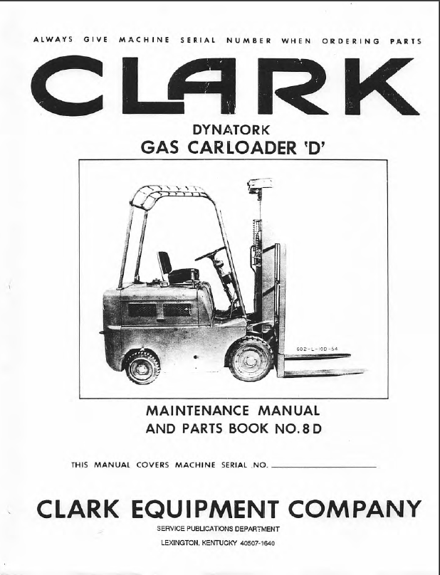 Clark Dynatork Gas Carloader D Forklift Parts Manual (No. 8D)