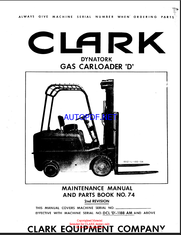 Clark Dynatork Gas Carloader D Forklift Parts Manual (No74_Dynatork)