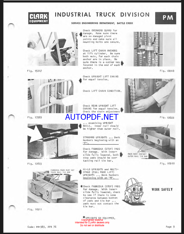 Clark EC20, EC25, ECS30 36-48 Volt W Model 210 Control Forklift Planned Maintenance and Adjustment Procedures Manual (PMA385)