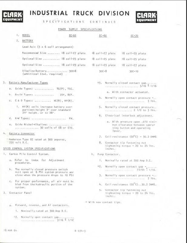 Clark EC50, EC60, EC70 Forklift Operators Manual (O-9K-1)