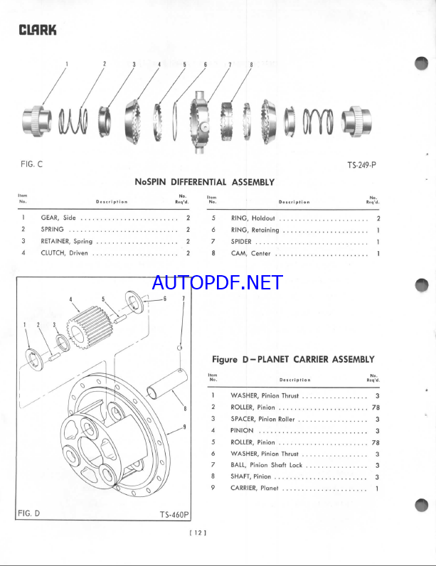 Clark FD-30001, FD-30500, FD-30600, FD-37500, FD-36500, RD-30500, RD-30600, RD-37500, RD-36500 Axle