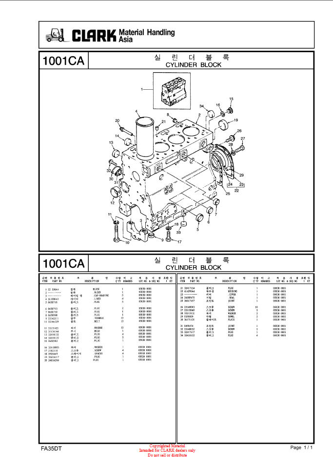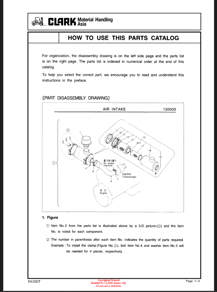 Clark FX353, FX403, FX453D, SF35, SF40, SF45D Forklift Parts Manual (FA35DT)