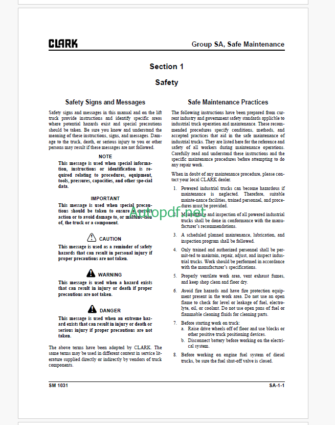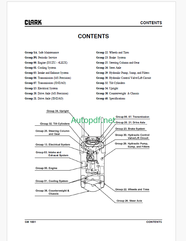 Clark GTS20, GTS25, GTS30, GTS33D Isuzu Engine Forklift Service Manual (SM1031)