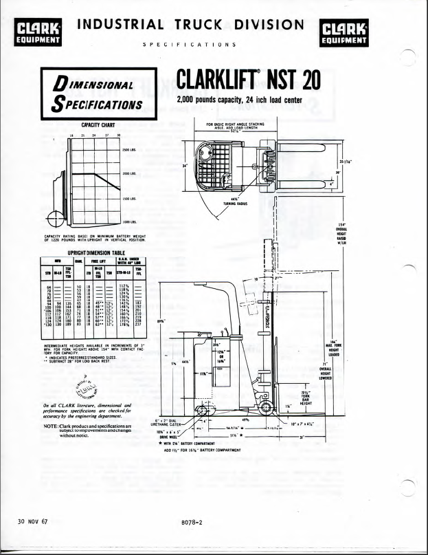 Clark NST15, NST20, NST25, NST30, NST40 SG Forklift Operators Manual (O-286-1)