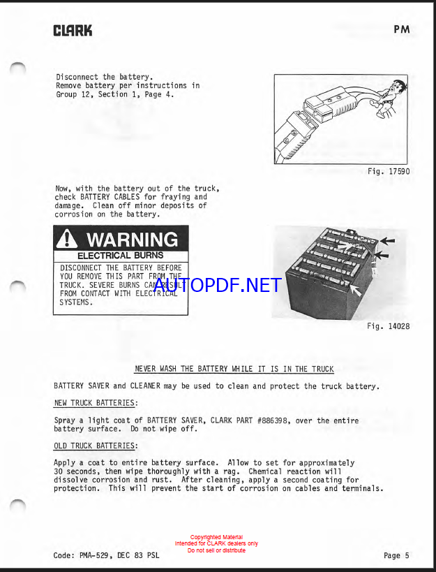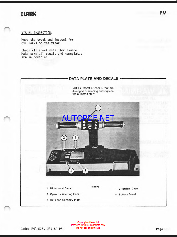 Clark PT5, PT7 Forklift Planned Maintenance and Adjustment Procedures Manual (PMA528)