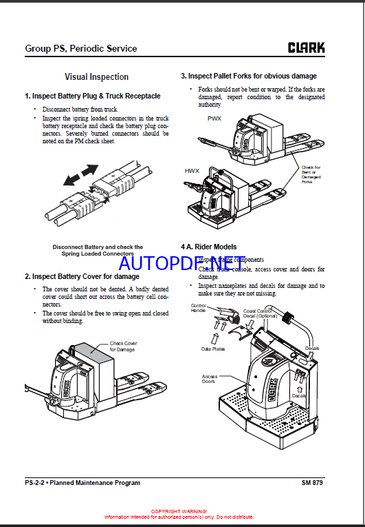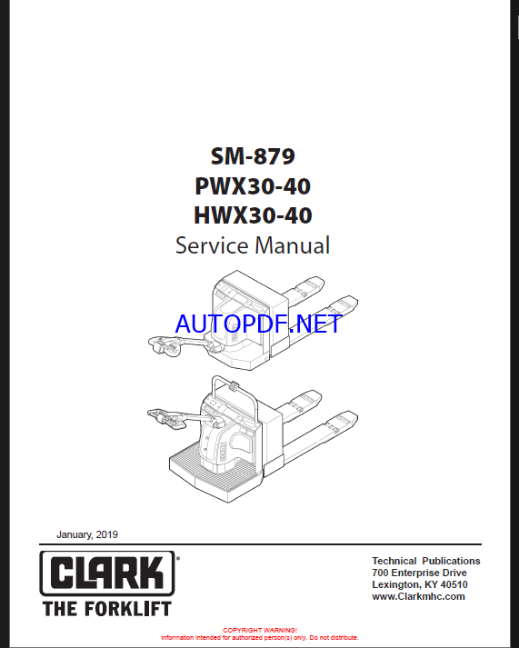 Clark PWX30-40, HWX30-40 Pallet Truck Service Manual (SM879)