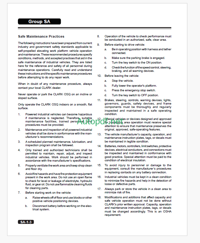 Clark QSQ126, QSQ162, QSQ192 Service Manual (SM1201)