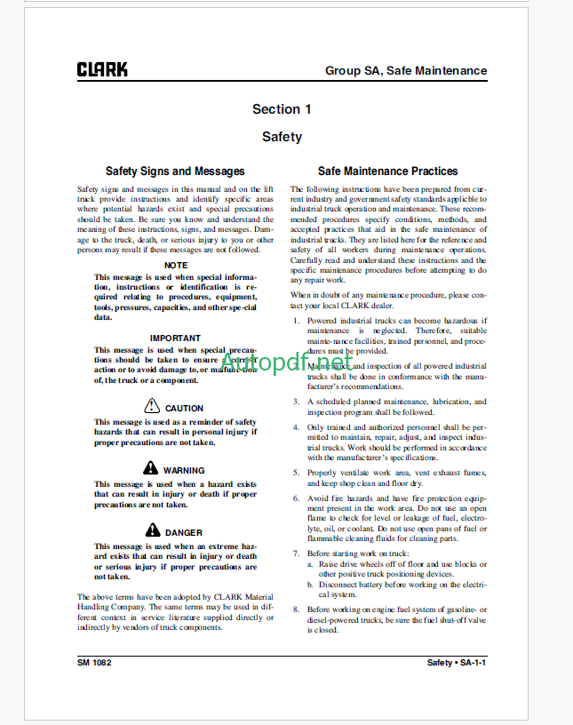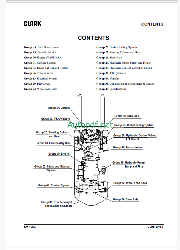 Clark S20, S25, S30, S35 D Yanmar Engine Truck Forklift Service Manual (SM1082)