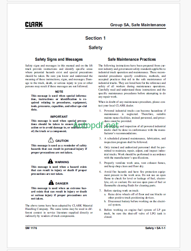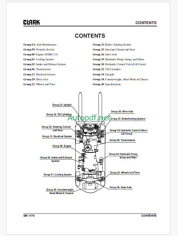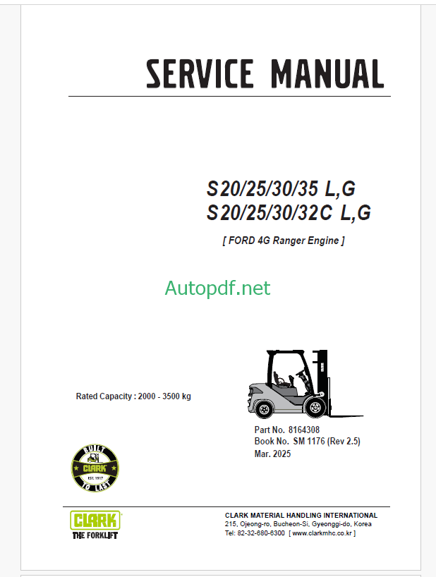 Clark S20, S25, S30, S35 L, G and S20, S25, S30, S32C L, G Ford 4G Ranger Engine Forklift Service Manual (SM1176)