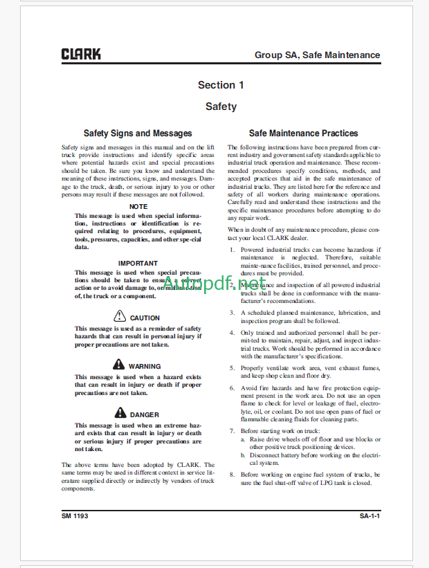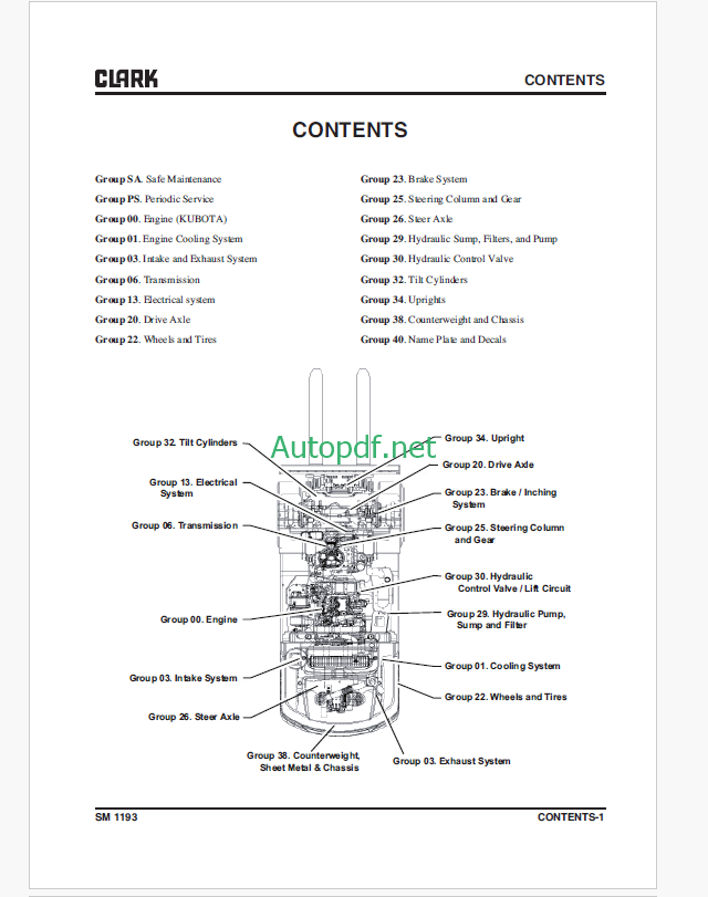 Clark S40s, S40, S45s, S45 L, S50s, S50, S55, S60 L KUBOTA LPG Tier0,Tier4-Stage 5 Engine Truck Forklift Service Manual (SM1193)