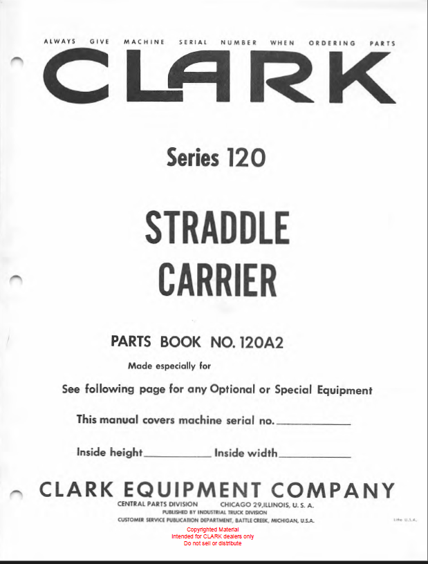 Clark Series 120 Straddle Carrier Parts Manual (X120A2)