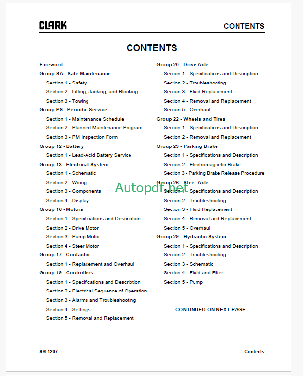 Clark SES15-25 Forklift Service Manual (SM1207)