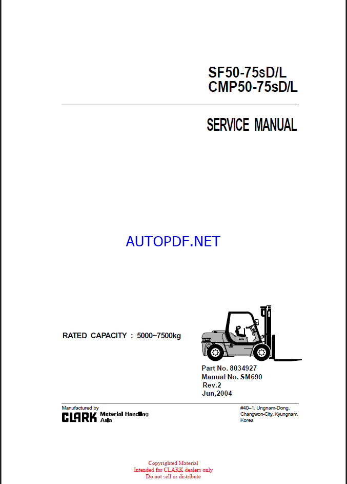 Clark SF50-75s D,L and CMP50-75s D,L Forklift