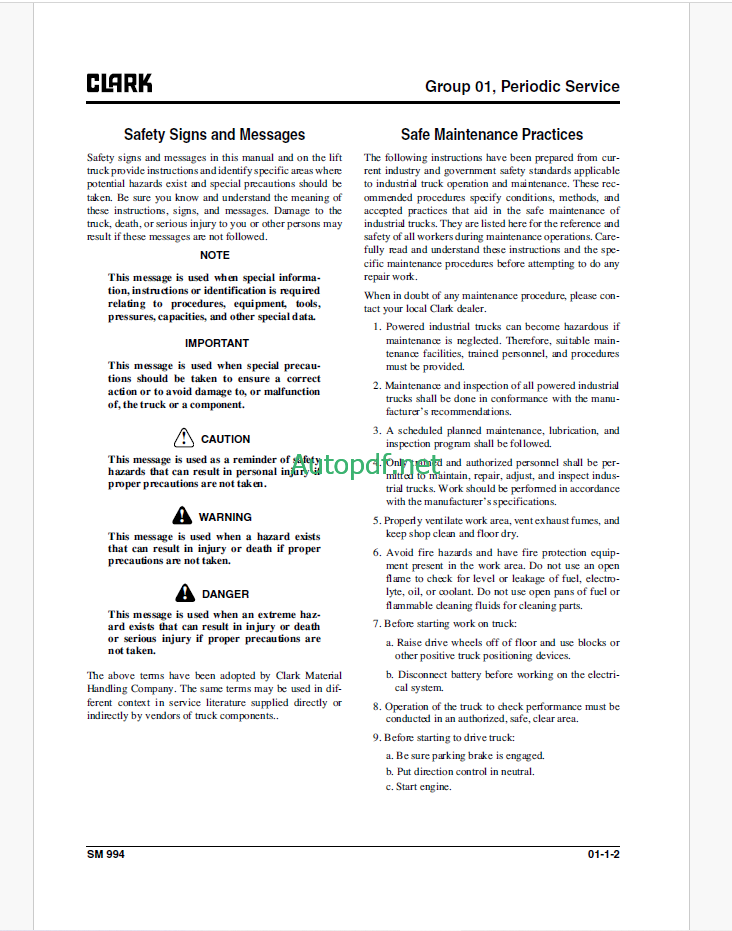 Clark SSX12, SSX16, SSX18 Straddle Stacker Service Manual (SM994)