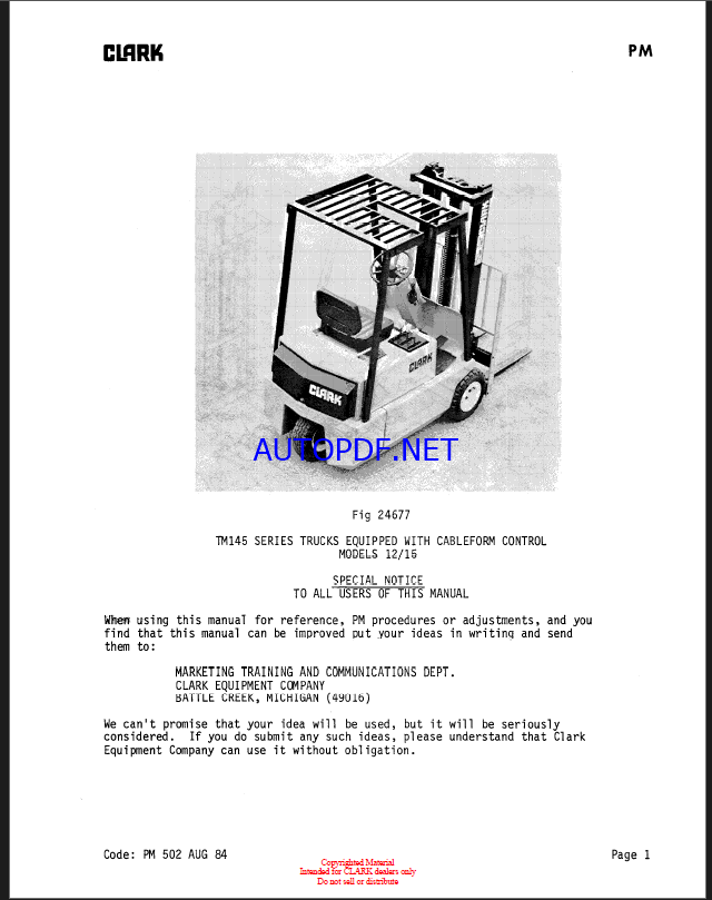 Clark TM, EM10 thru 15S Forklift