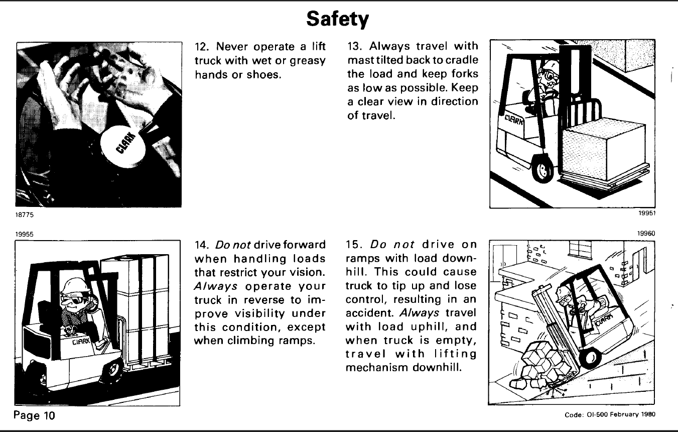 Clark TM145, TM127 10 thru 15S Forklift Operators Manual (OI-500)
