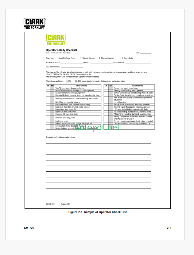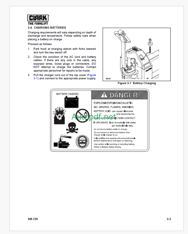 Model: Clark WP30 Pallet Truck Service Manual (SM729)