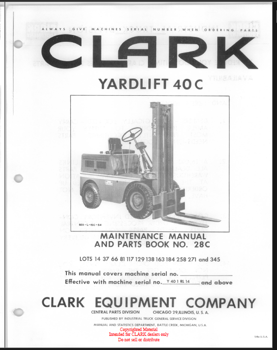 Clark Yardlift 40C Forklift Parts Manual (28C)