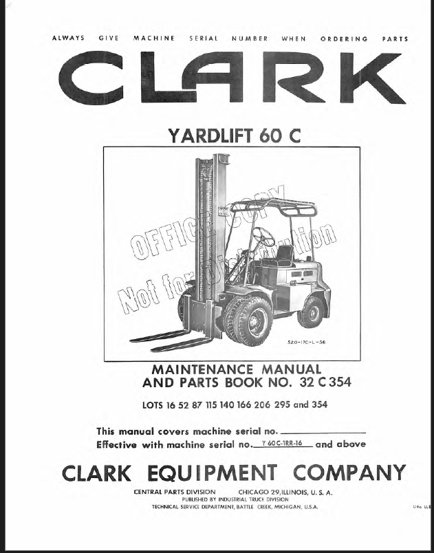 Clark Yardlift 60C Forklift Parts Manual (32C)